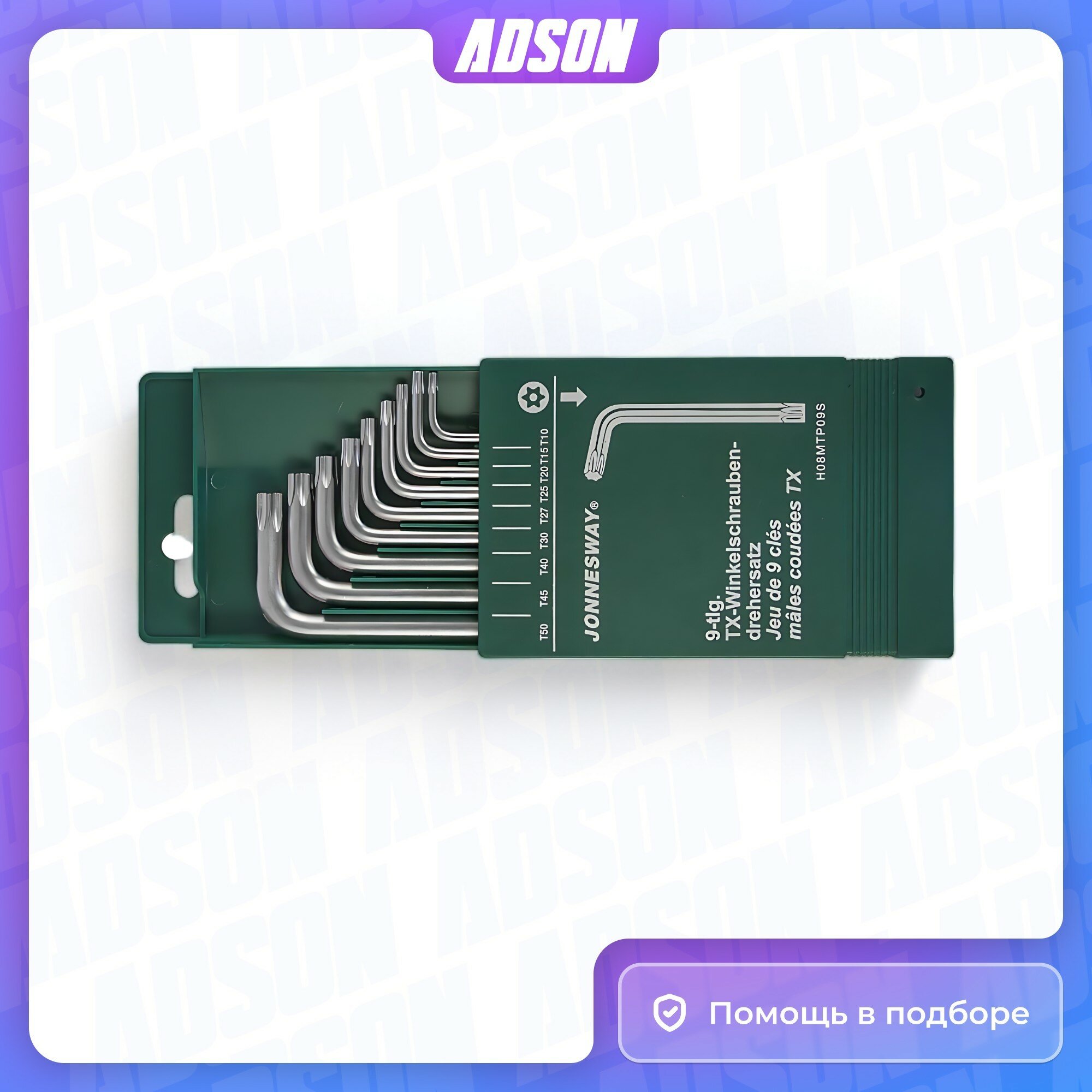 Набор ключей Torx с отверстием г-образных 9 пр. Т10-Т50 JW JONNESWAY H08MTP09S | цена за 1 шт