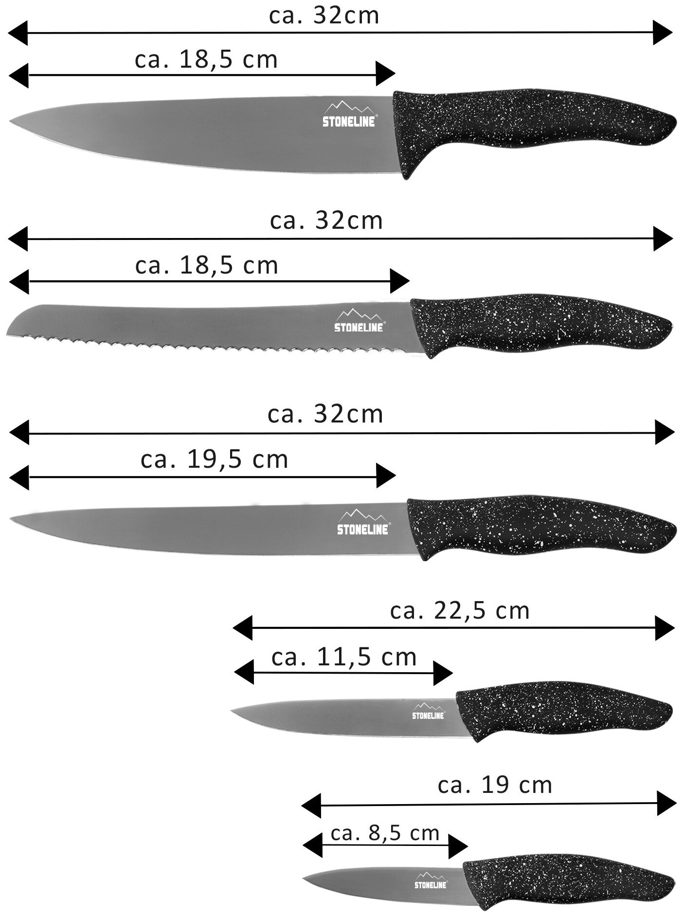 | Типы ножей в наборе | нож для овощей, нож для томатов, нож для хлеба, универсальный нож, филейный нож, шеф-нож |