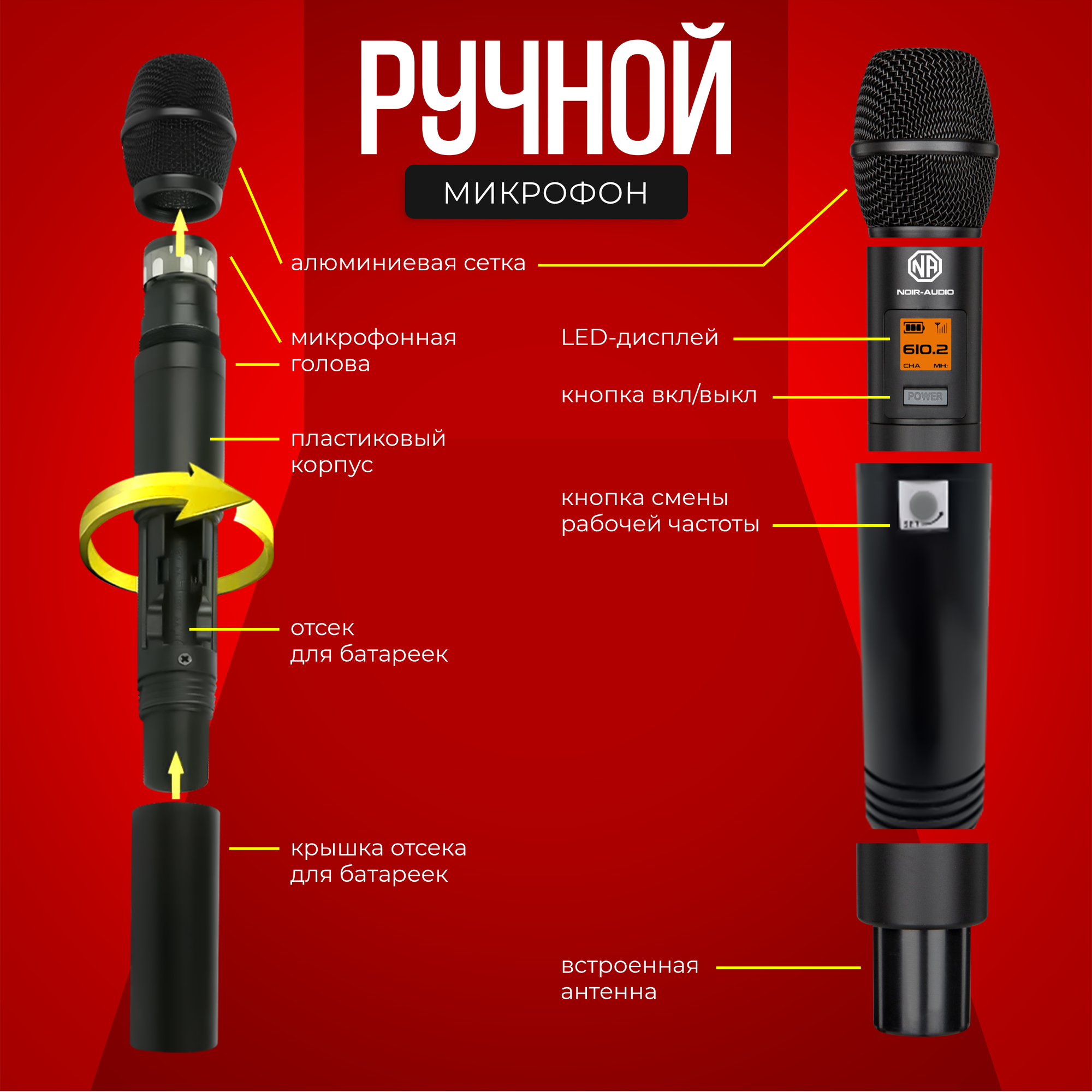 Беспроводной микрофон для живого вокала и караоке NOIR-audio NX 200 с двумя ручными микрофонами