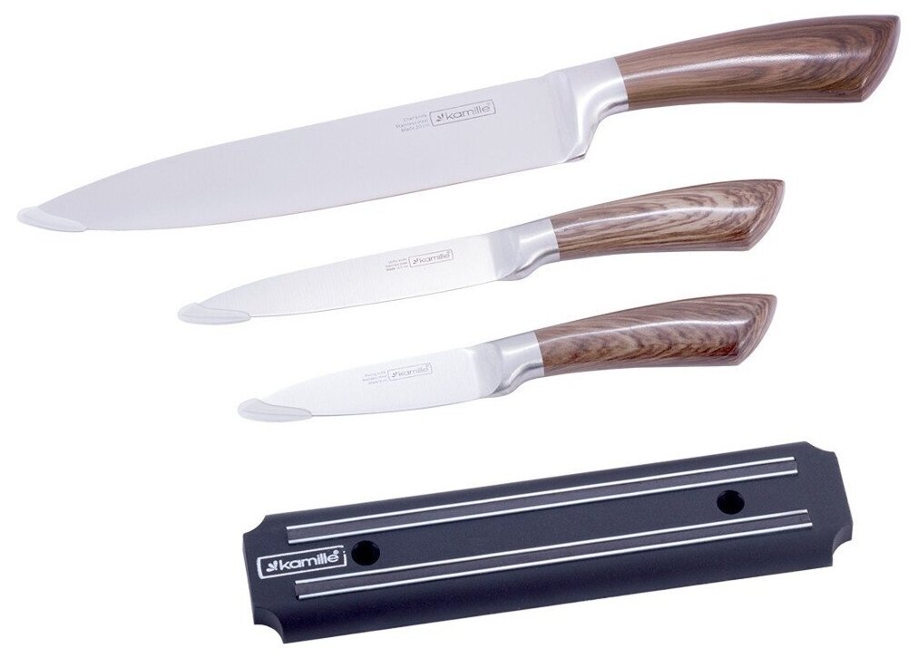 10 цен на Набор кухонных ножей на магнитной планке КМ-5042 Kamille (3 ножа + держатель) ORIGINAL