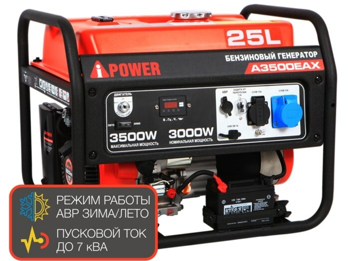 Генератор A-iPower A3500EAХ (3,5/3,0, электро, бак 25л, 50 кг)