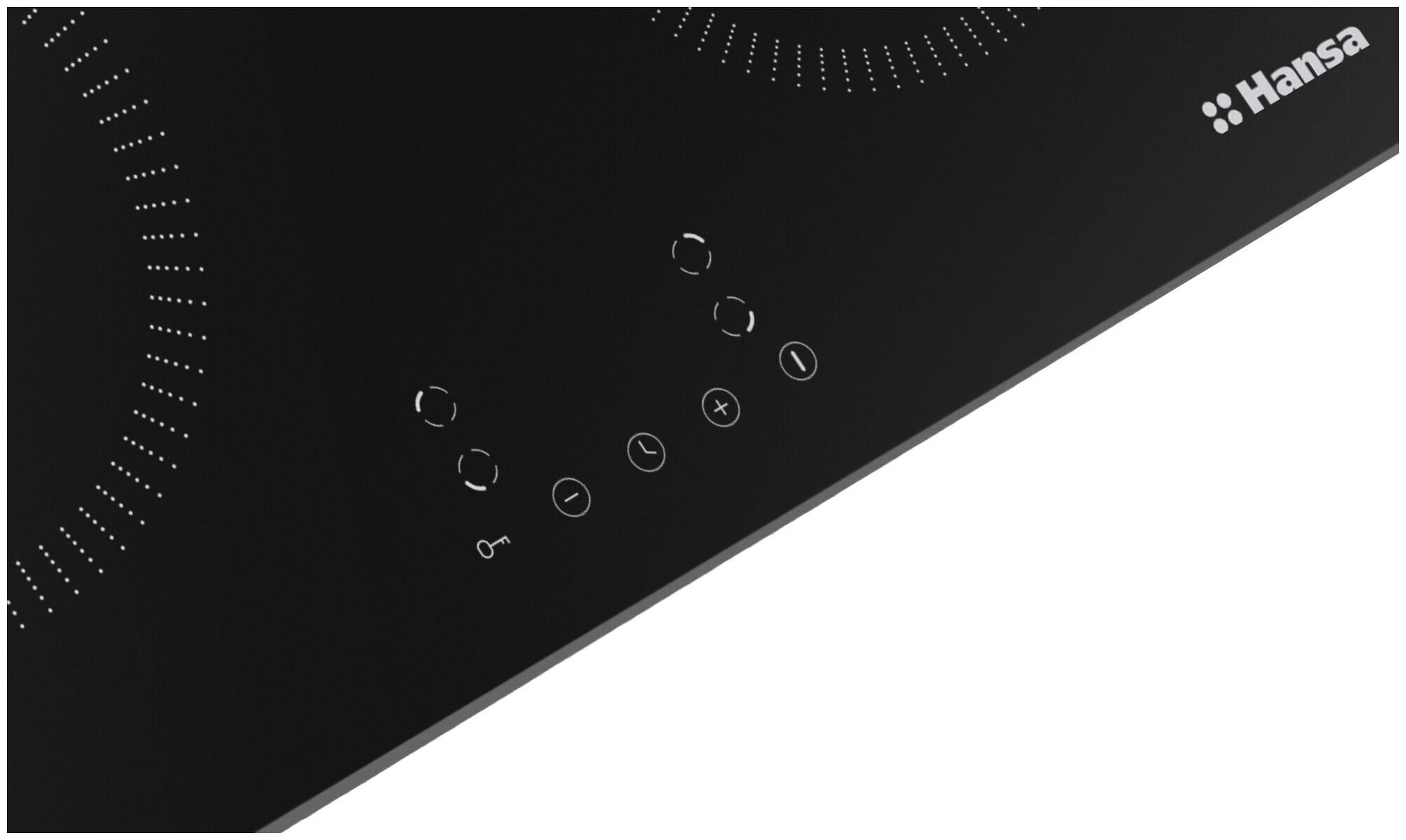 Индукционная электрическая варочная панель Hansa BHI683200, встраиваемая, 60 см, функция блокировки управления, звуковой таймер, стеклокерамическая поверхность с сенсорным управлением