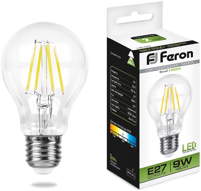 Лампа светодиодная, (9W) 230V E27 4000K, LB-63 информация: