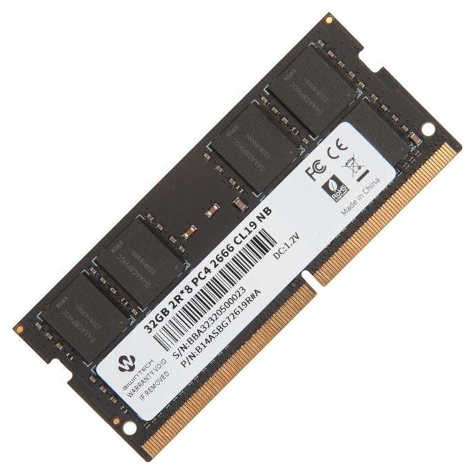 Модуль памяти SO-DIMM DDR 4 DIMM 32Gb PC21300, 2666Mhz, Biwintech (32GB 1R*8 PC4 2666 CL19 NB) B14ASBG72619R#A информация:
