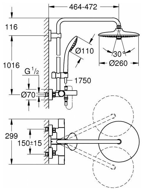 Душевая система с термостатом для ванны GROHE Vitalio Joy с тропическим душем 27860001 информация: