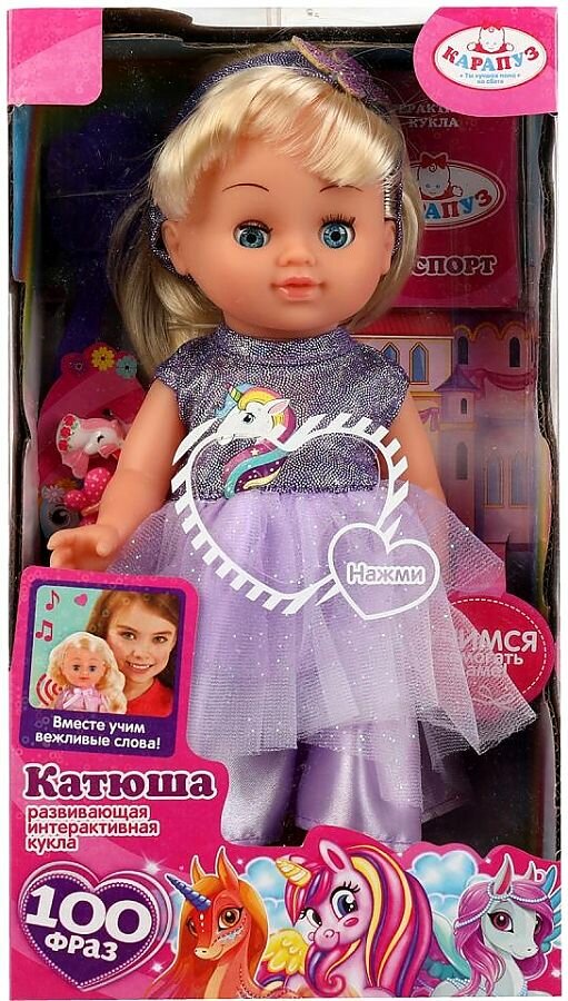 10 цен на Кукла Карапуз Абвгдйка. Катюша, 25 см, в платье, закр. глазки, озвуч. Y25D-РОLI27-UNIСОRN-22-RU