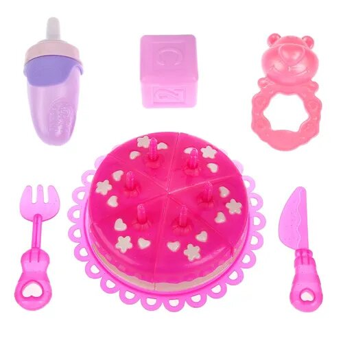 | Комплектация | - кукла в одежде; - бутылочка; - нож; - вилка; - тортик; - погремушка; - кубик; - свидетельство о рождении; |