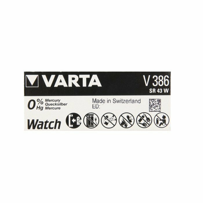 Батарейка Varta Silver Oxide, 386 (SR43W) - 1BL, 1.55 В, блистер, 1 шт. информация: