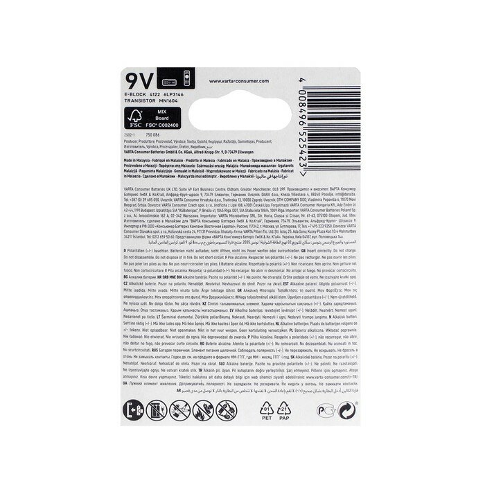 Varta Батарейка алкалиновая Varta LONGLIFE 9V блистер 1 шт информация: