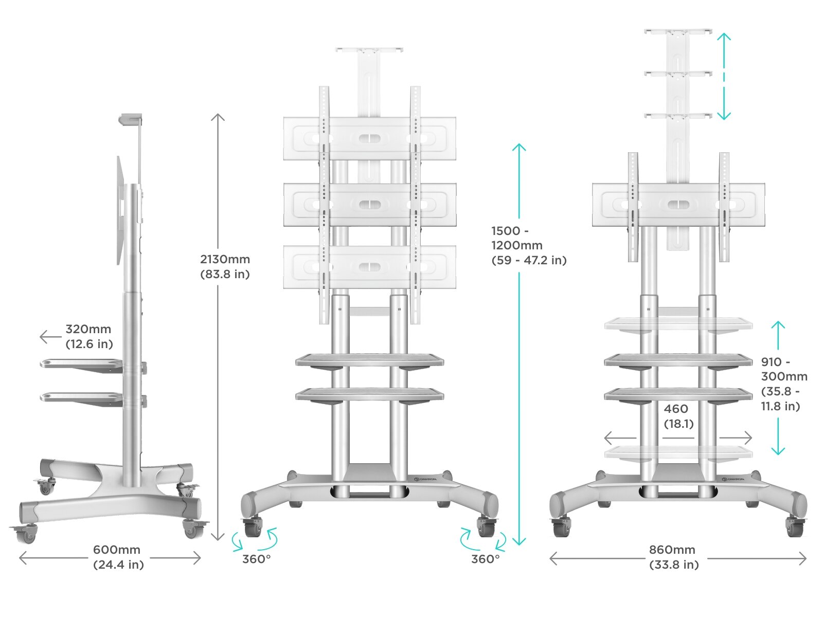ONKRON TS 1552 мобильная стойка c двумя полками. Цвет белый информация: