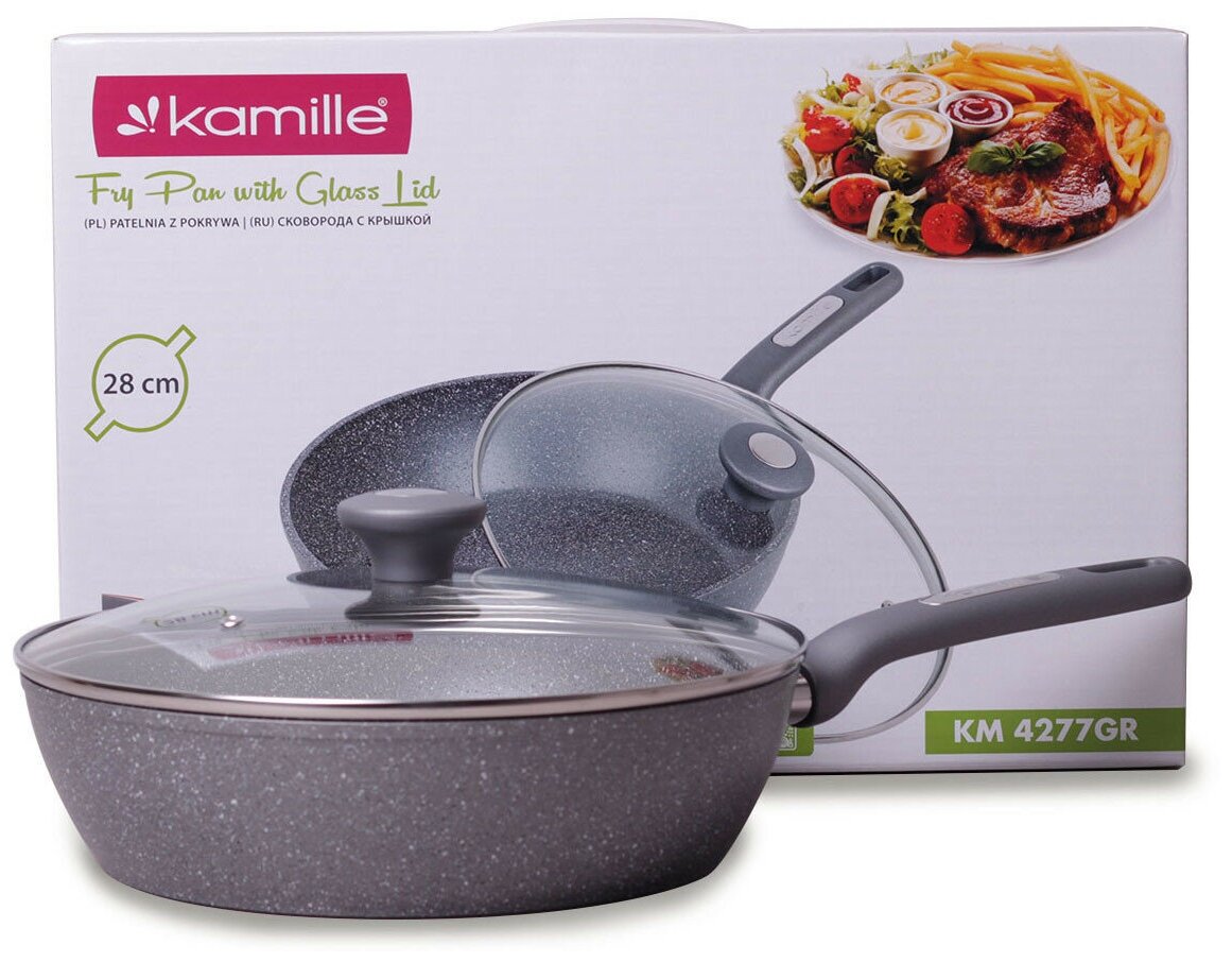 10 цен на Сотейник Kamille 28см из литого алюминия с гранитным покрытием и крышкой
