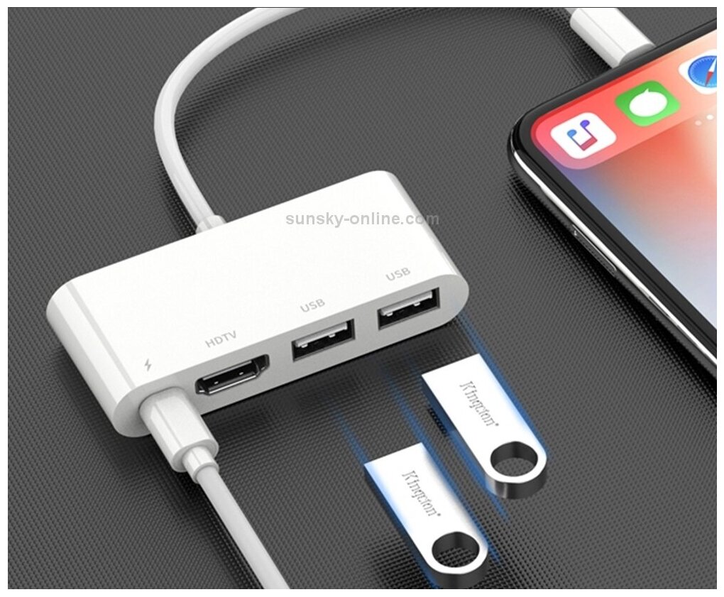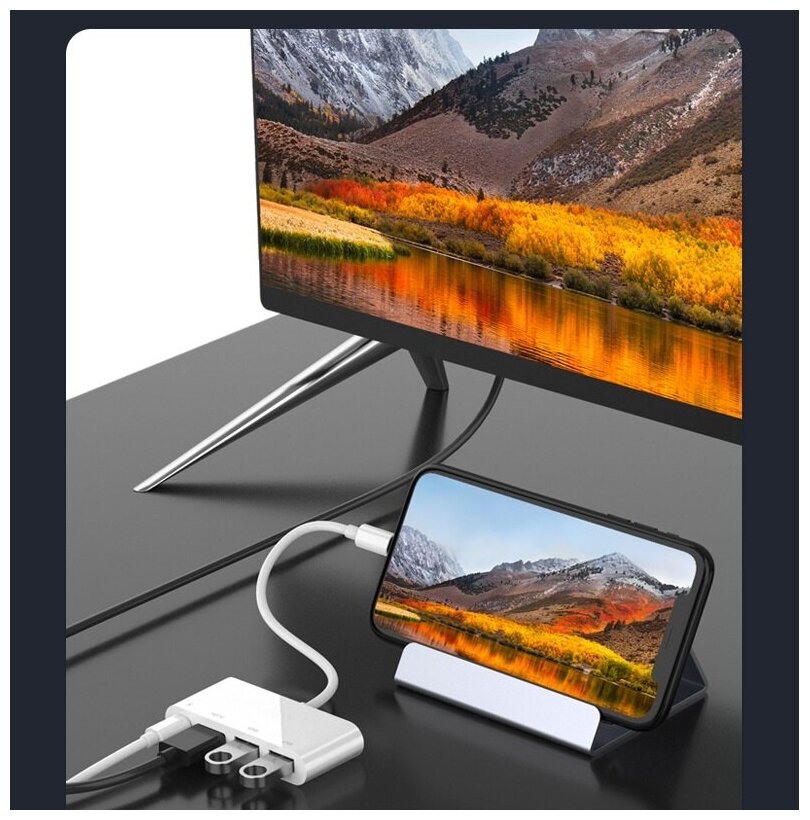 Разветвитель адаптер переходник концентратор Lightning HUB Хаб Onten OTN-75216 док станция 4в1 белый информация: