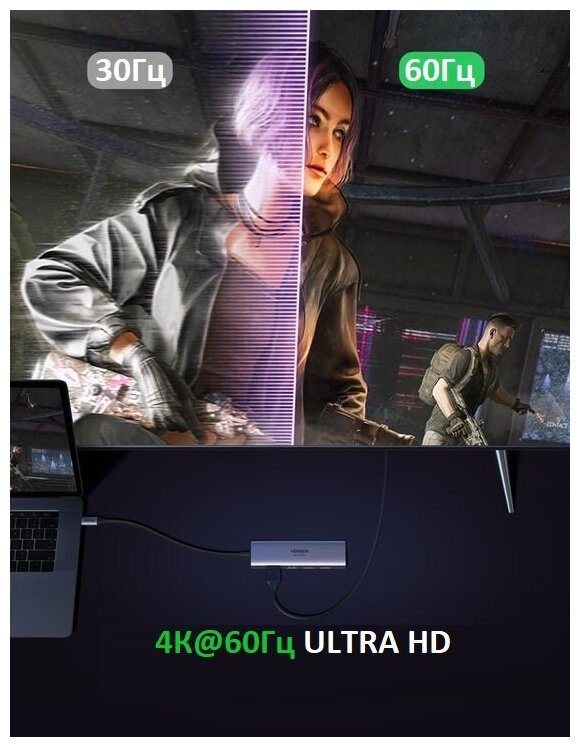 Отзывы на Адаптер UGREEN CM511 (60383) USB-C Multifunction Adapter. Цвет: серый космос