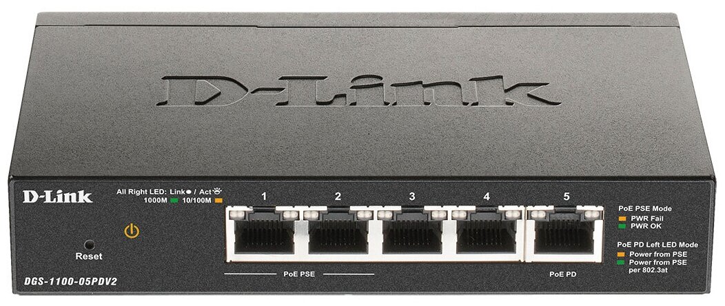 Коммутатор D-Link DGS-1100-05PDV2 5G 2PoE настраиваемый информация: