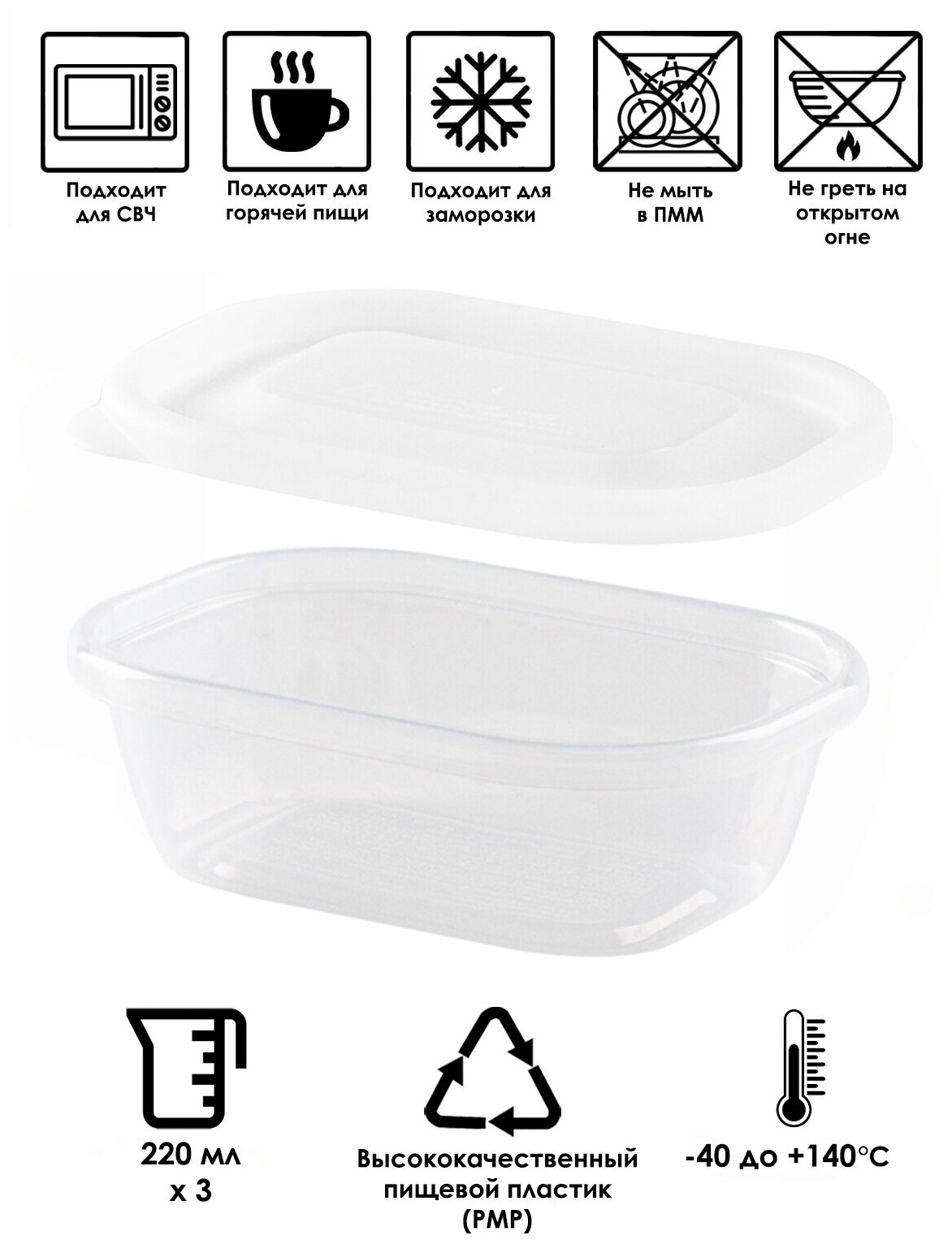 Набор контейнеров для продуктов 220 мл (H), 3 шт., 12,8*9,2*4,1 см Nakaya информация:
