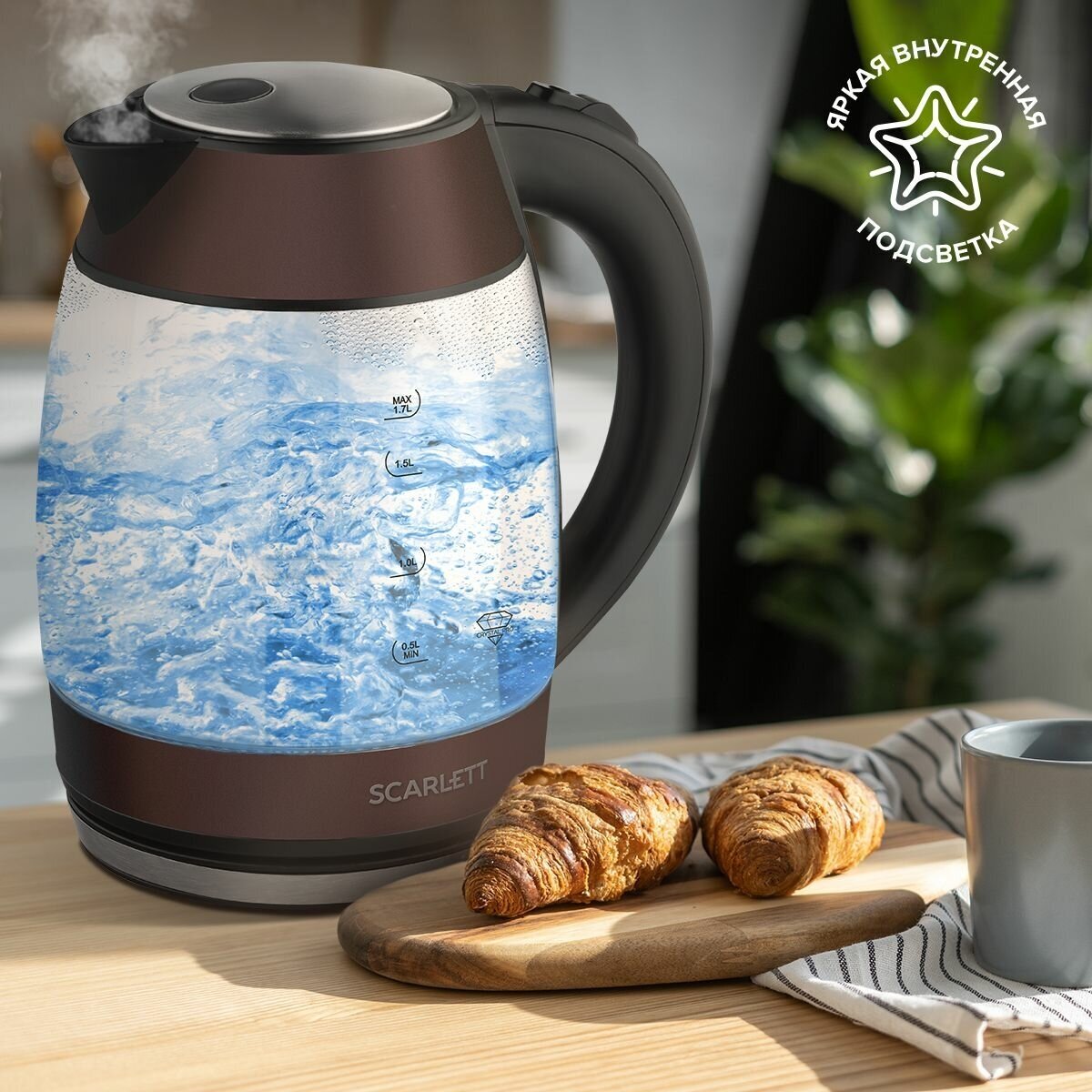 Чайник SCARLETT SC-EK27G100, 2200Вт, 1.7л, коричневый информация: