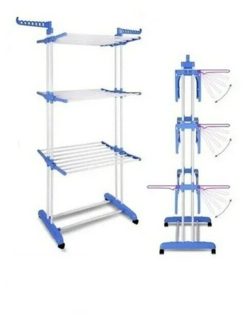Сушка для белья, сушилка для одежды, сушилка напольная, складная, 3 уровня, 2 вешалки, на колесах информация: