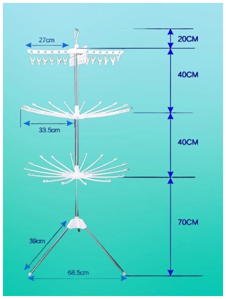 Сушилка для белья /вешалка для одежды напольная, 129х61х61, складная, 2 уровня, цвет серый