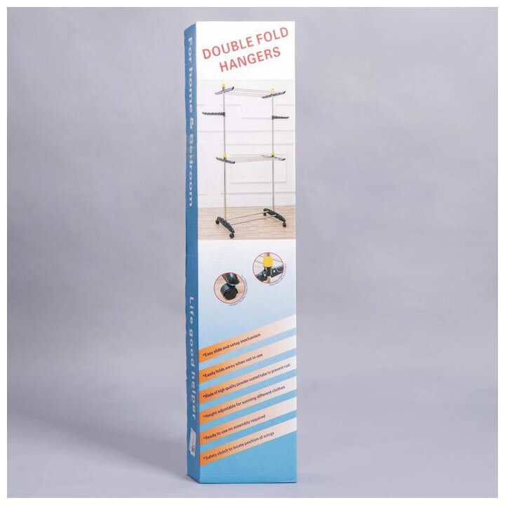 Сушилка для белья /вешалка для одежды напольная, 129х61х61, складная, 2 уровня, цвет серый