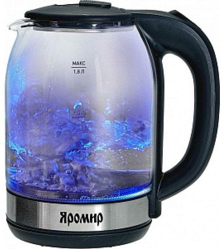 Чайник яромир ЯР-1061 корпус из жаропр. стекла, черный: 1500Вт, 1,8л