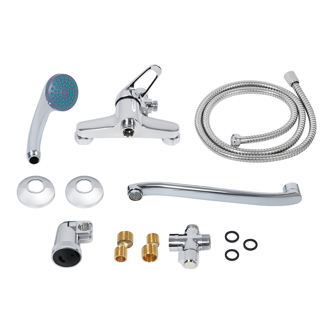 Смеситель/кран для ванны/душа (однорычажный, поворотный с длинными (27 см) изливом и лейкой, хромированный, латунный) SMART SM91-06(C35) информация: