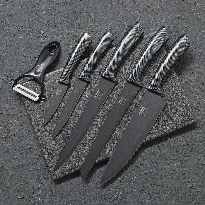 10 цен на Набор кухонных ножей «Гипноз», 6 предметов, цвет чёрный