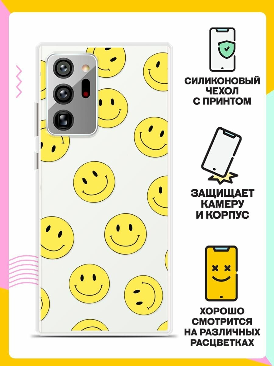 Силиконовый чехол на Samsung Galaxy Note20 Ultra Смайлики / для Самсунг Галакси Ноут 20 Ультра информация: