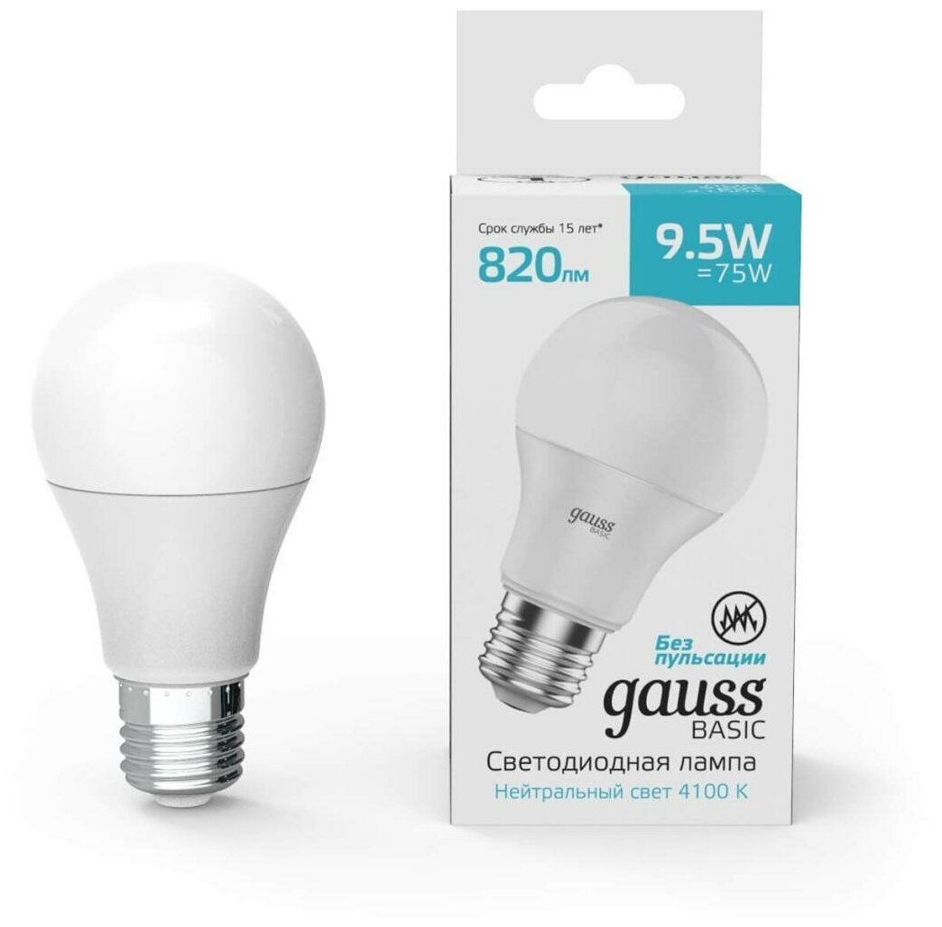 Типы/Лампочки/Светодиодные Gauss Лампа светодиодная Gauss E27 9,5W 4100К матовая 1023220 информация: