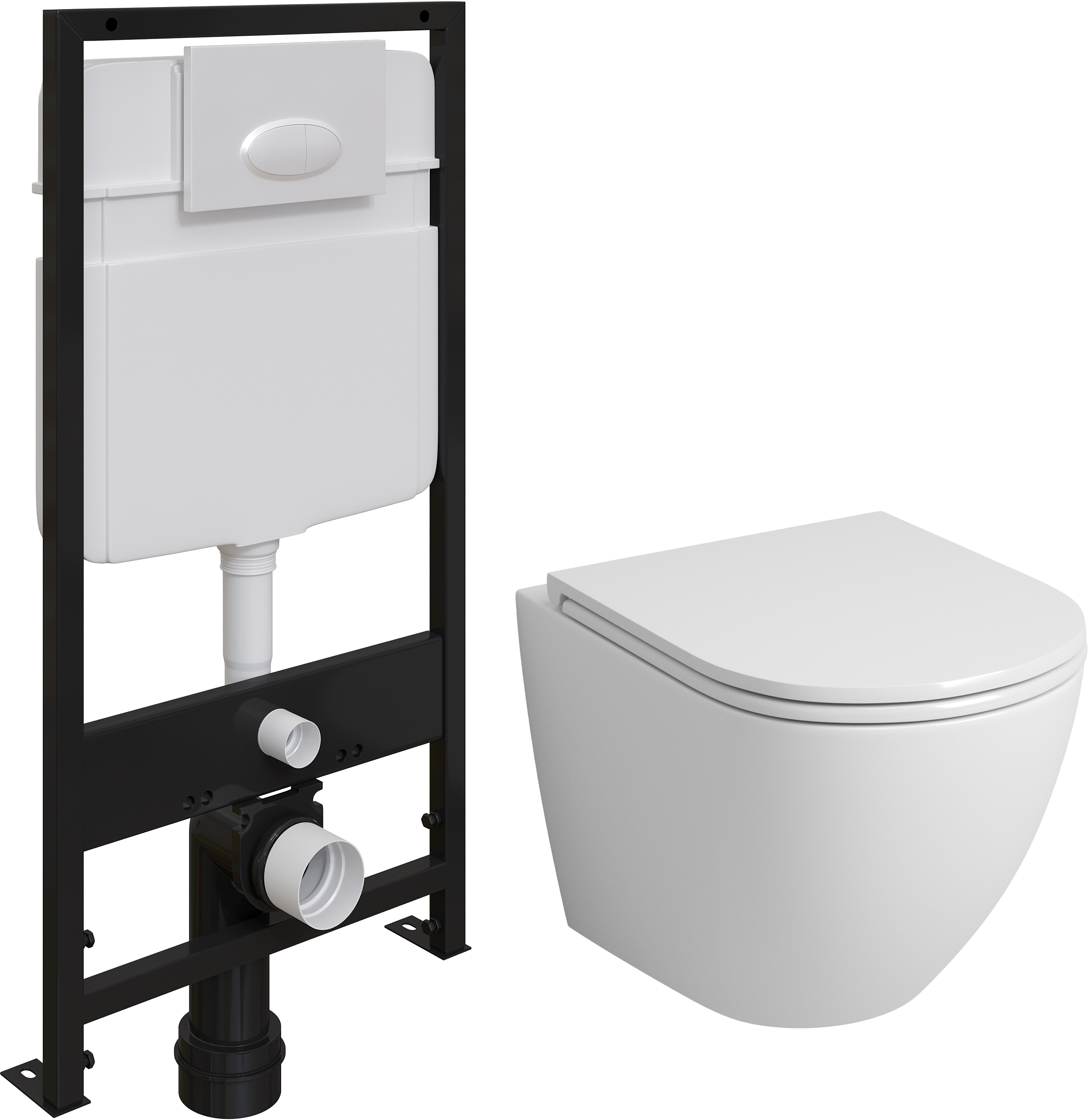 Комплект IDDIS Basic BASBQ02i73: подвесной унитаз, инсталляция и черная клавиша смыва