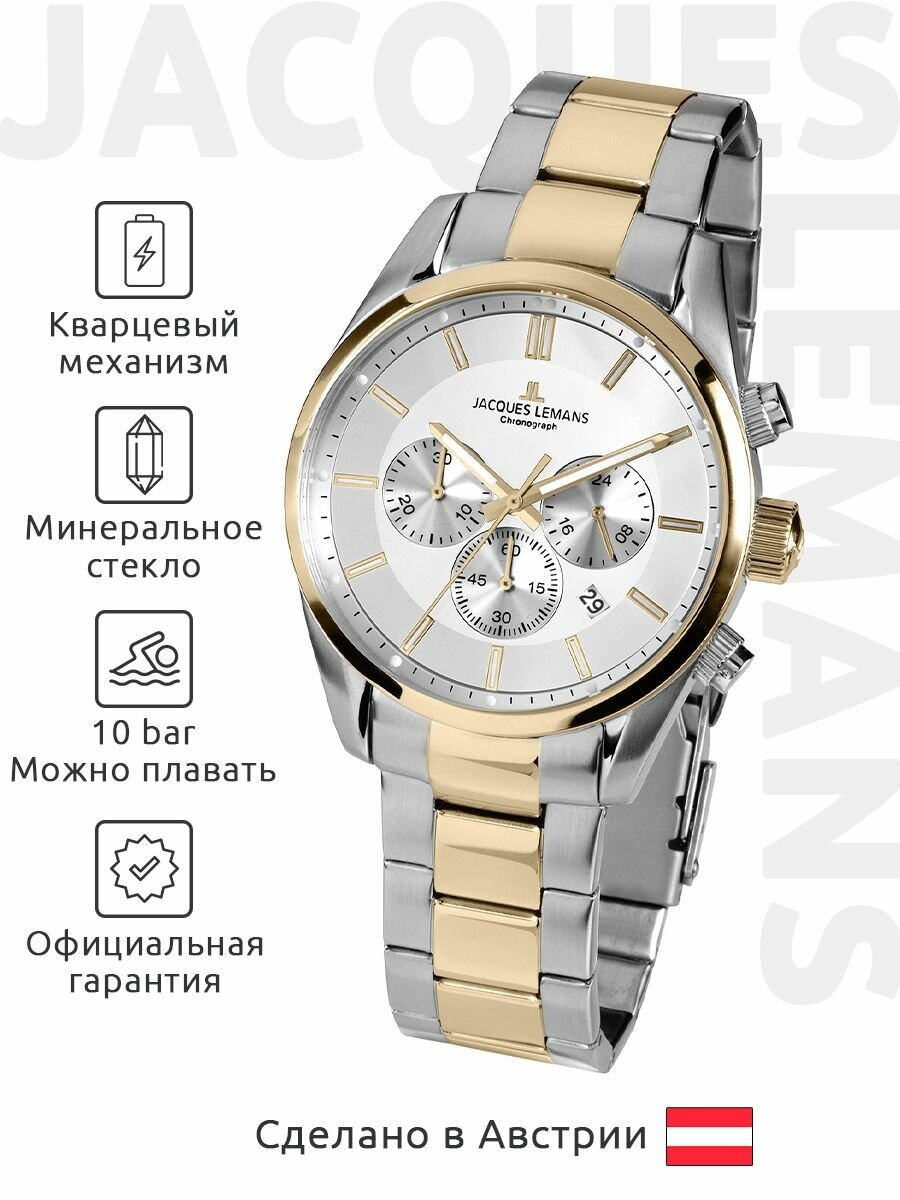 Мужские водонепроницаемые часы-хронограф Jacques Lemans 42-6F с гарантией