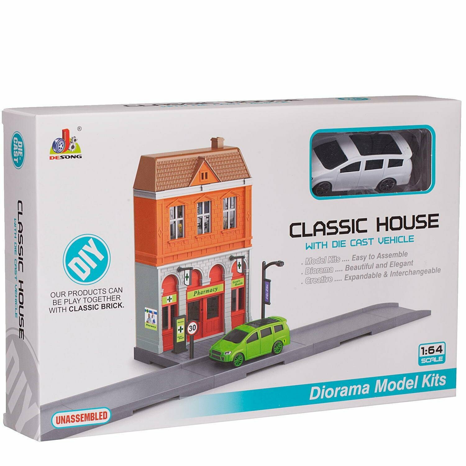 10 цен на Конструктор JUNFA Городская улица Аптека машинка металл. 1:64 WT-06128