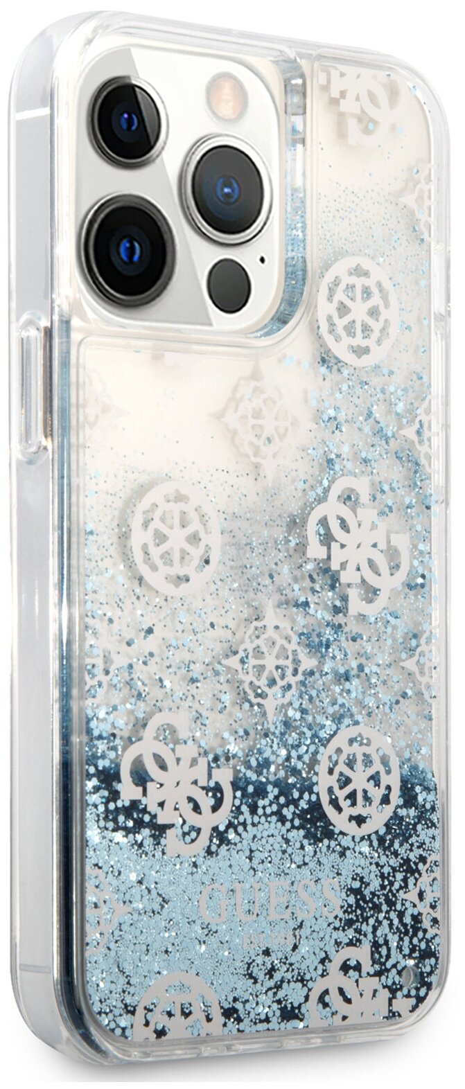 Guess для iPhone 13 Pro чехол Liquid Glitter Peony Hard Blue информация: