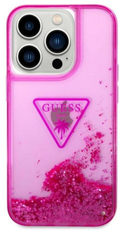 Guess Чехол Guess Liquid glitter Triangle logo Hard Translucent для iPhone 14 Pro, фуксия информация: