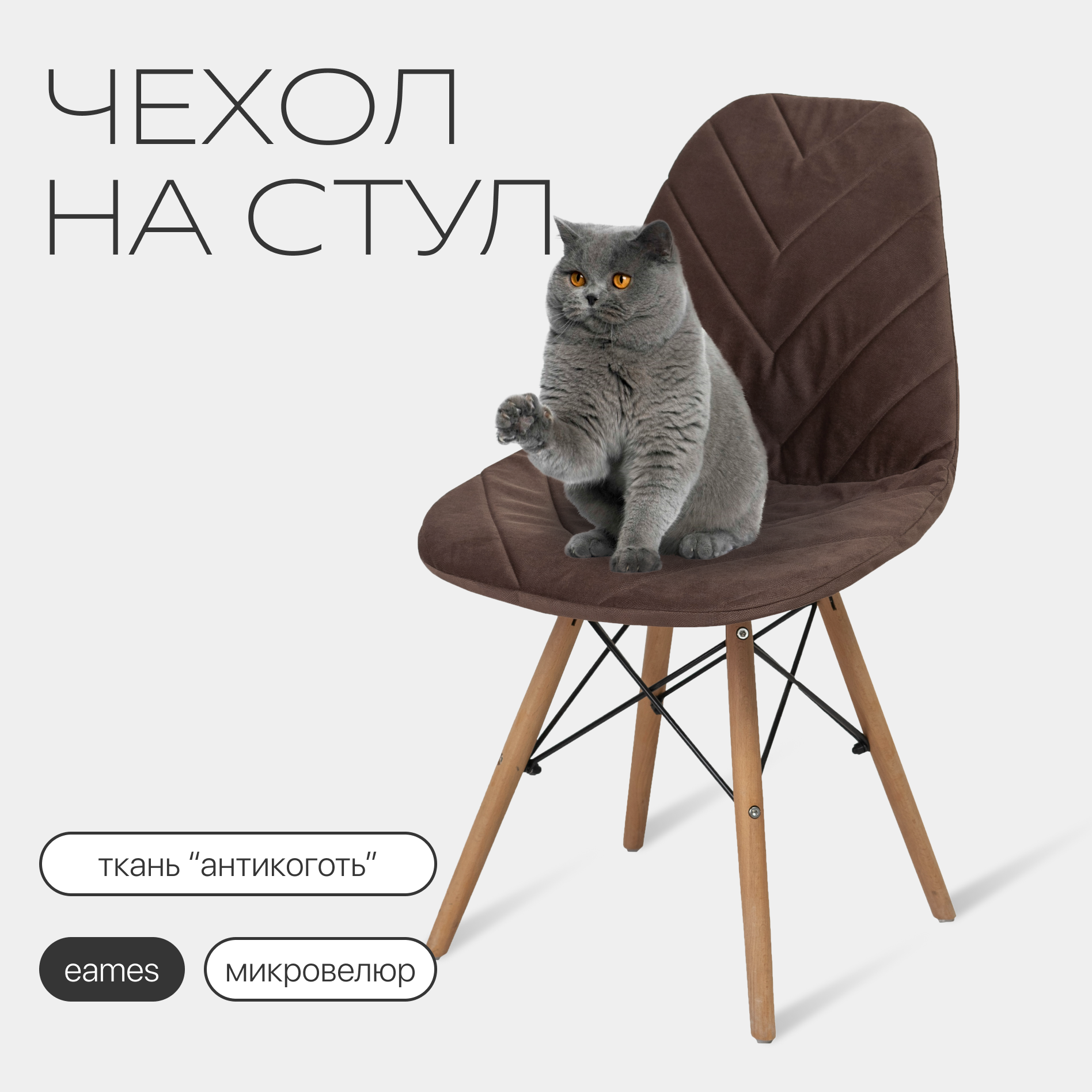 Отзывы на Чехол на стул со спинкой Eames DSW из микровелюра, 40х46см, коричневый