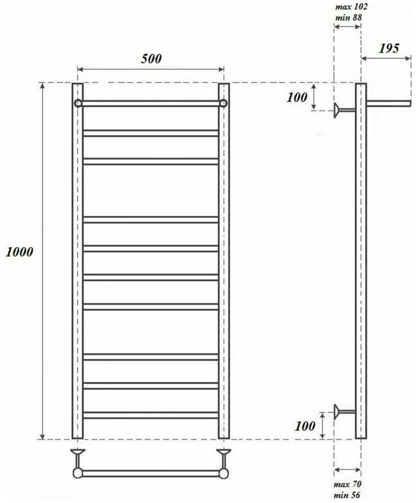 Отзывы на Полотенцесушитель электрический (антифриз) Point PN10150PE П9 500x1000 с полкой левый/правый, хром