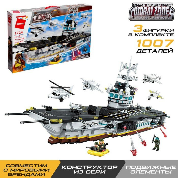 Qman Конструктор Военная зона «Авианосец», 3 минифигуры, 1007 деталей информация: