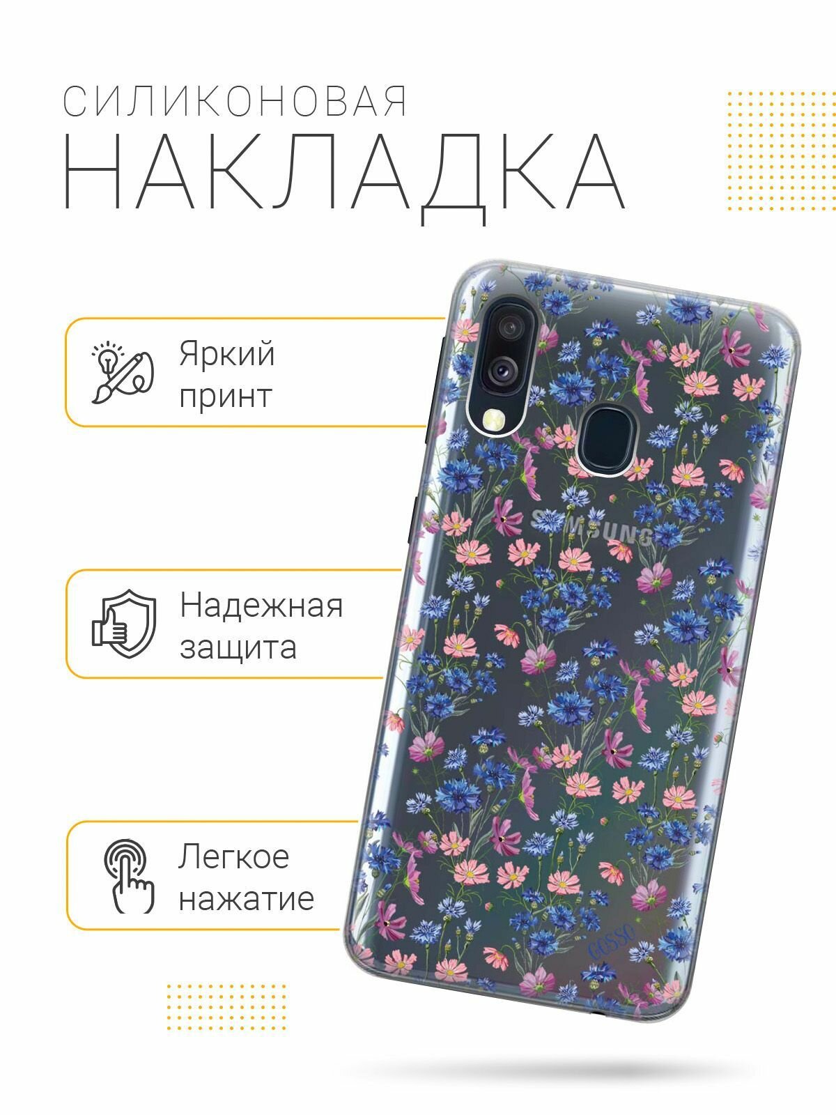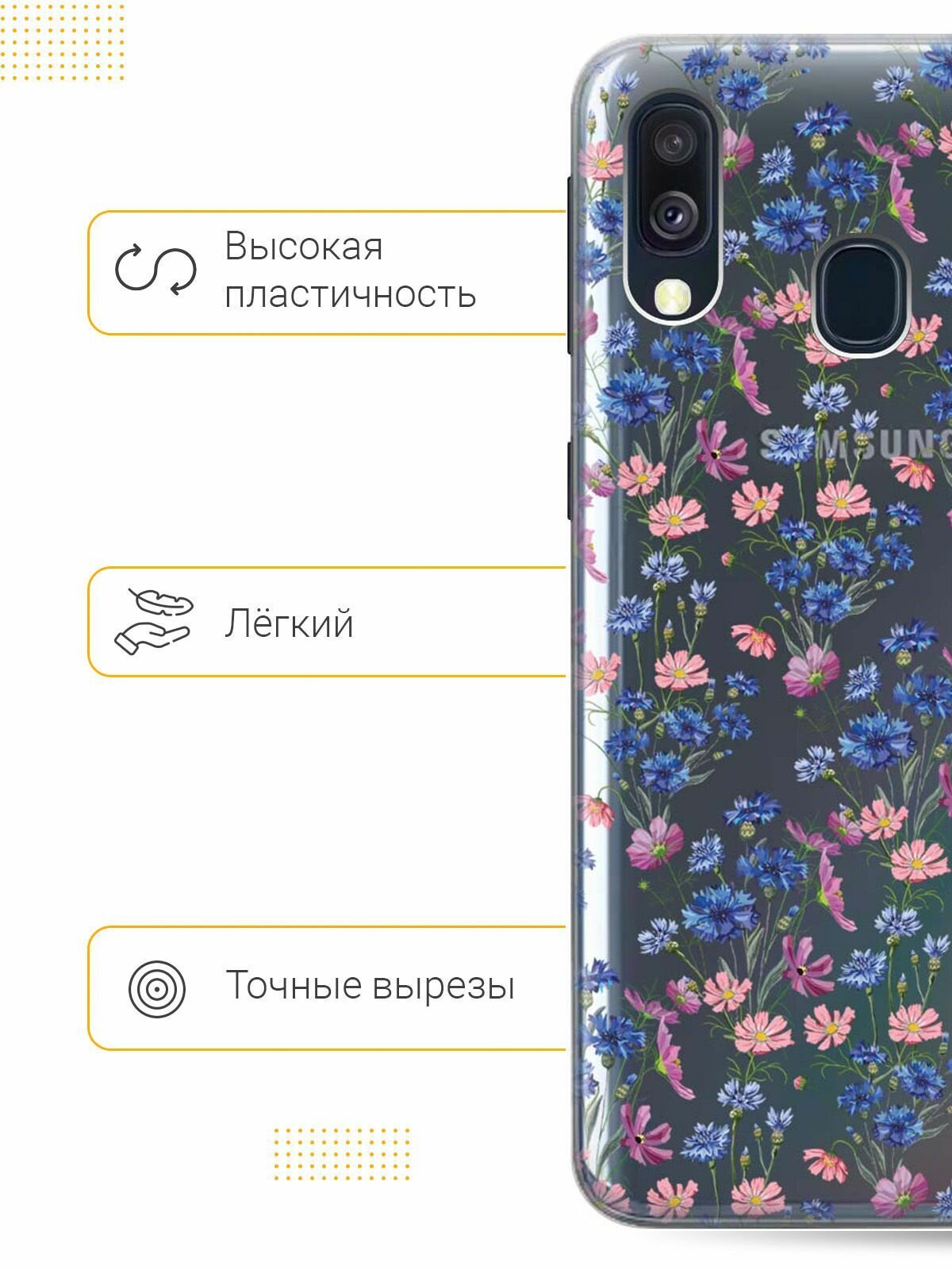 Отзывы на Ультратонкий силиконовый чехол-накладка Transparent для Samsung Galaxy A40 с 3D принтом "Lovely Cornflowers"