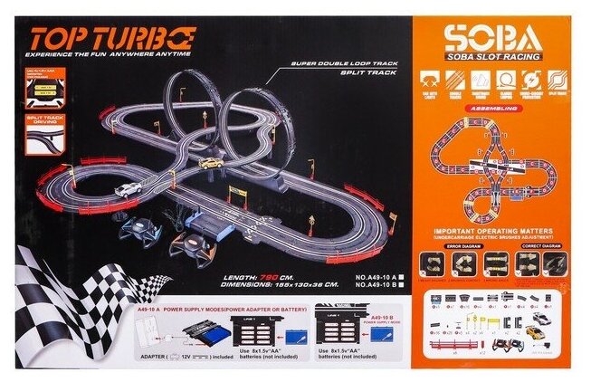 10 цен на Автотрек с машинками на пульте. TURBO. с 2 машинами, длина 790 см, работает от сети