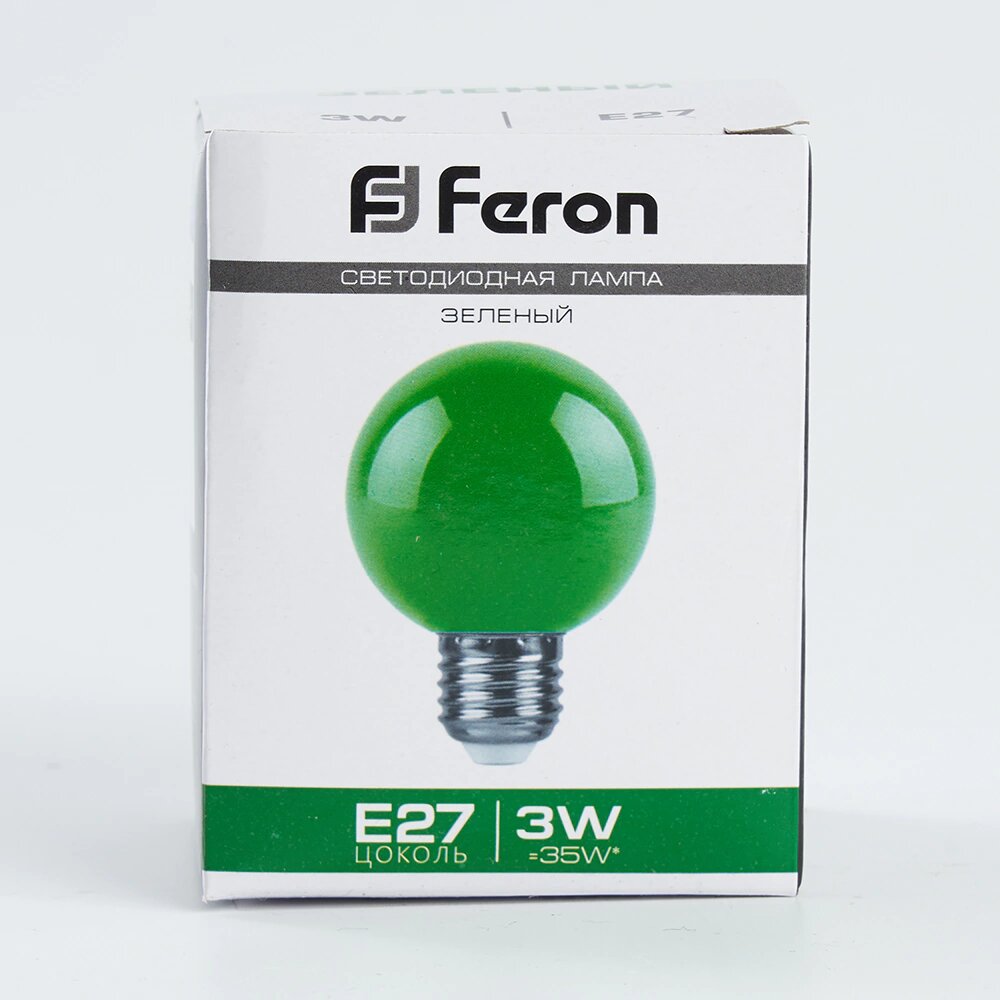 10 цен на Светодиодная лампа Feron шар 3 Вт E27 зеленая матовая