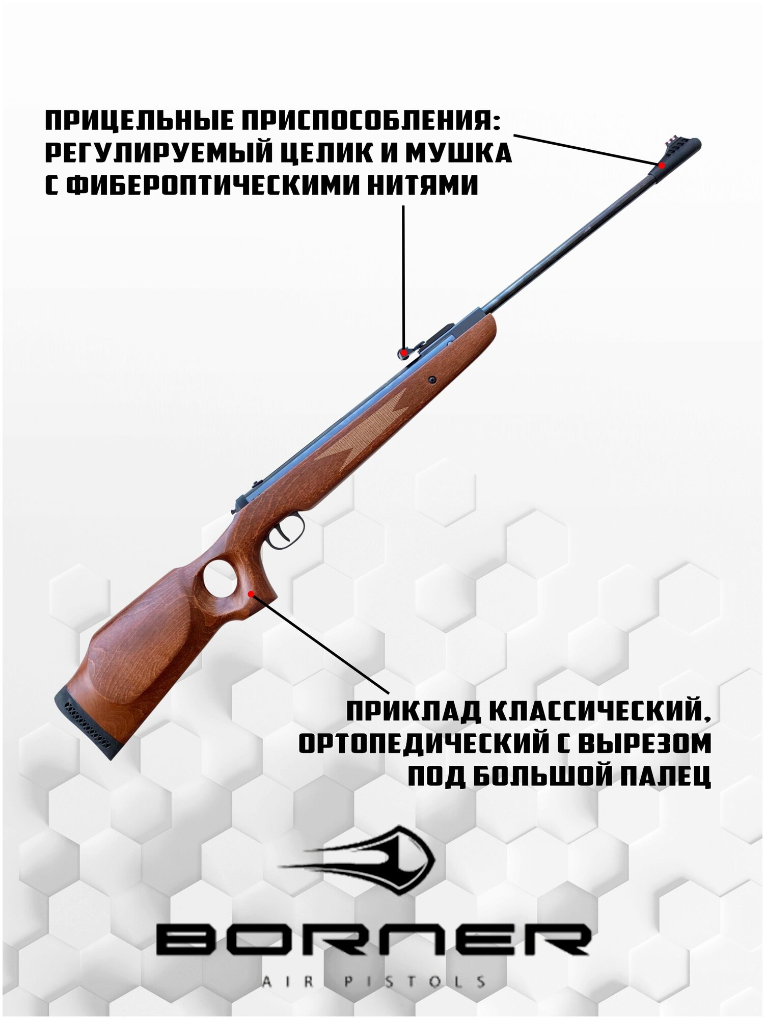 10 цен на Винтовка пневматическая Borner XS25SF (переломка, дерево, мушка, целик) кал. 4.5 мм, 3 Дж.