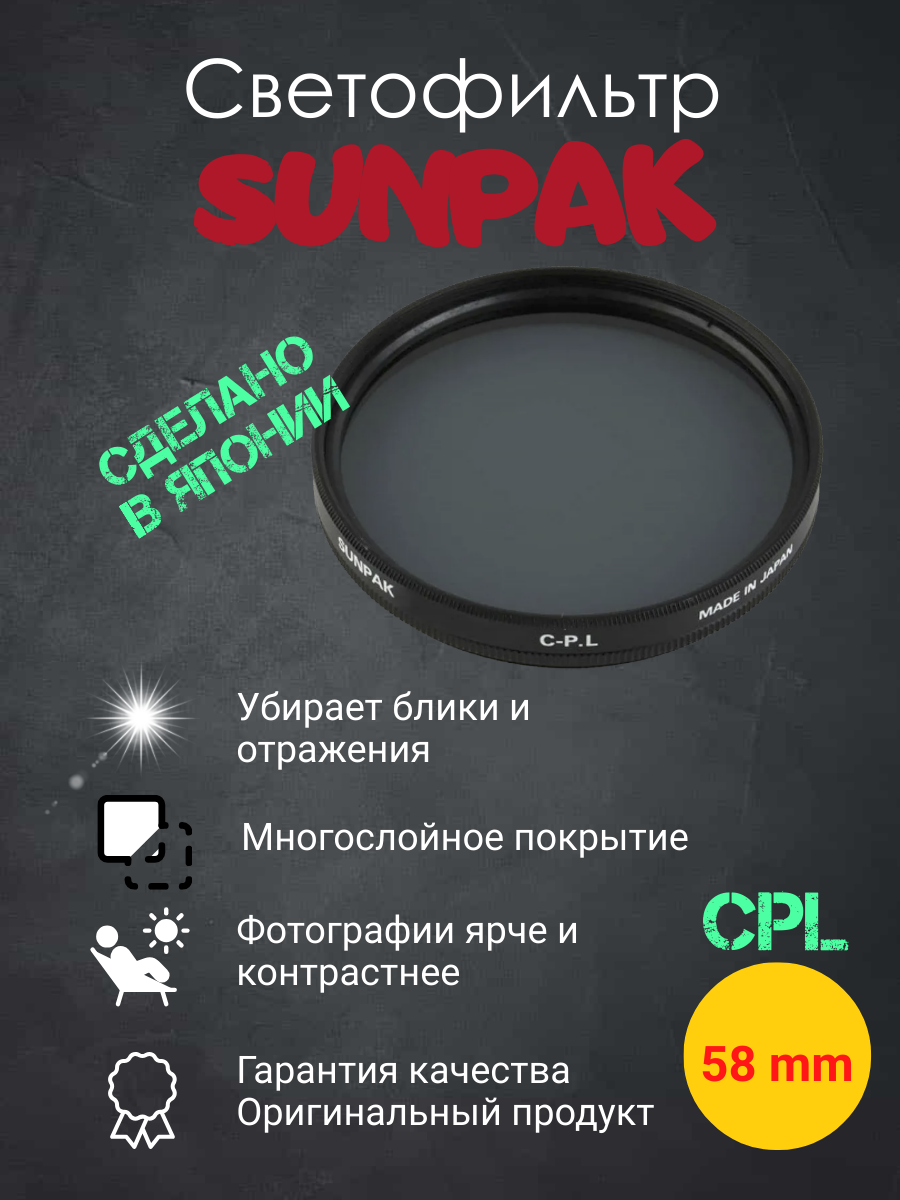 Светофильтр SUNPAK CPL 58mm информация: