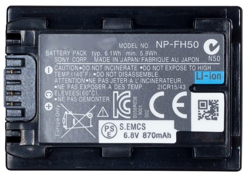 | Совместимый аккумулятор | NP-FH30 / NP-FH40 / NP-FH50 / NP-FH60 / NP-FH70 / NP-FH100 |