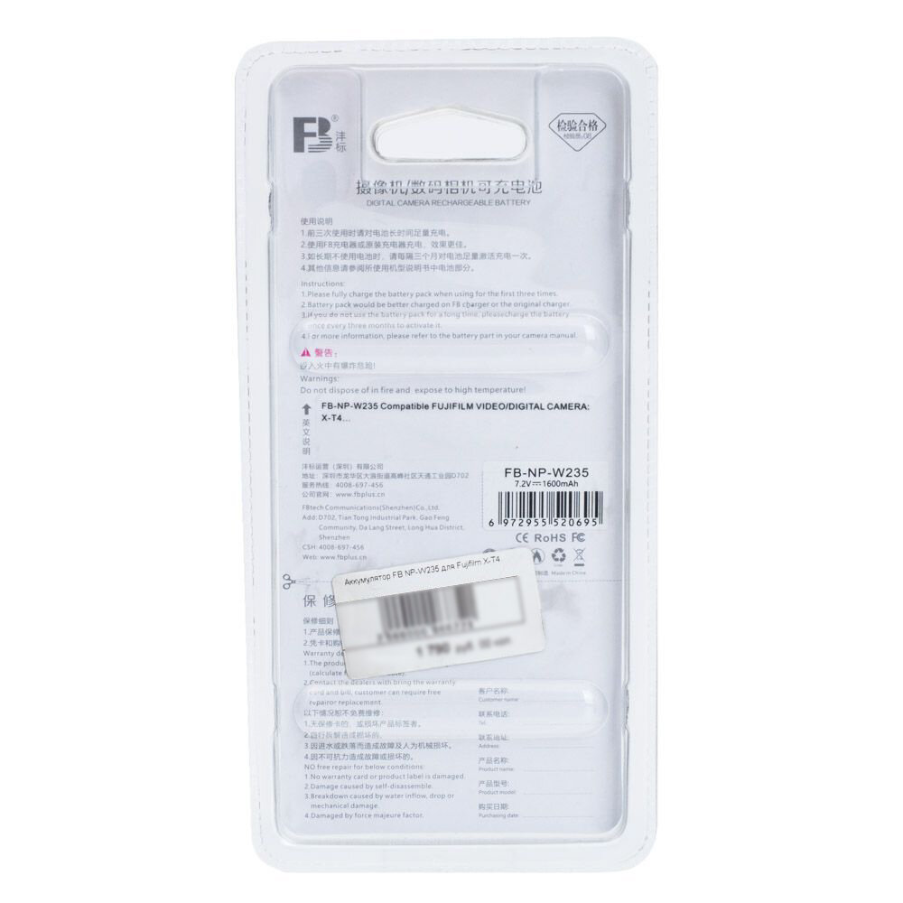 Аккумулятор FB NP-W235 для Fujifilm X-T4 информация: