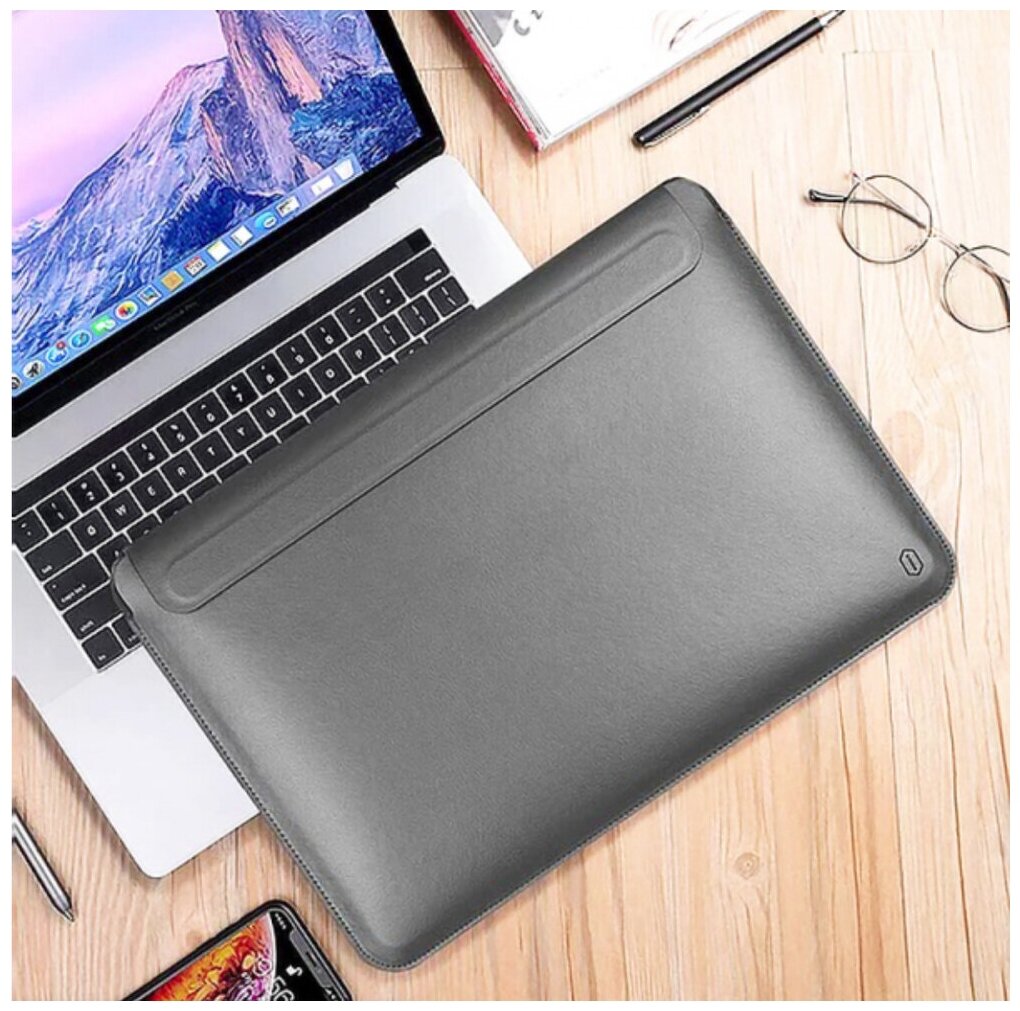 Чехол для ноутбука кожаный WiWU Skin Pro II на MacBook Pro 16.2 / Honor MagicBook / Huawei MateBook D 15 (2021) - Серый