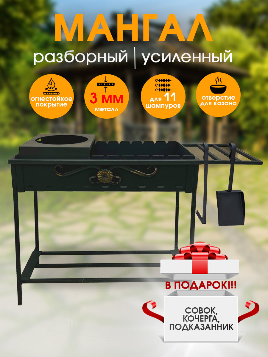 10 цен на Мангал разборный, усиленный 3мм с подказанником, совком и кочергой