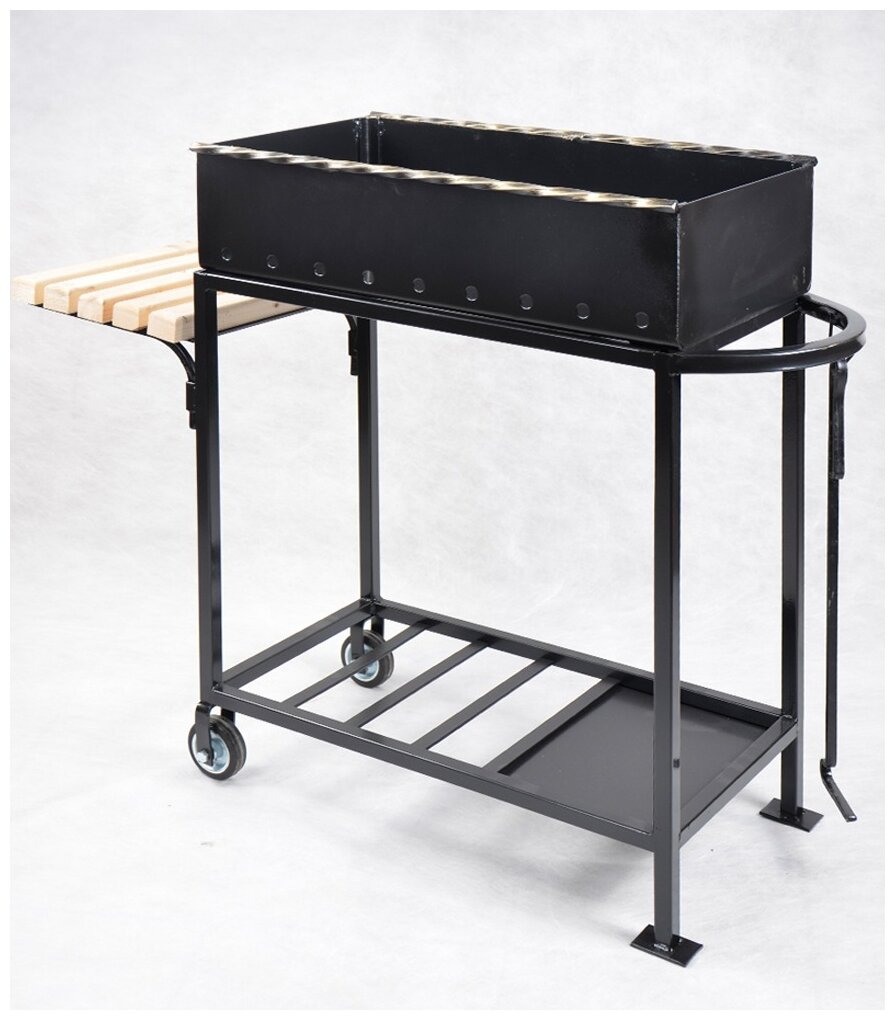 | Дополнительная информация | в комплекте кочерга; длина 60 см, полочка 30см; размеры топки мангала(ДхШхВ): 60х37х15 см |
