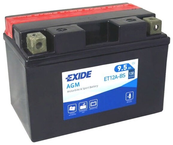 Отзывы на Аккумулятор для мотоцикла и скутера Exide AGM 9.5 А/ч 130 А прям. пол. с/зар. с эл. ET12A-BS (150х87х105) YT12A-BS