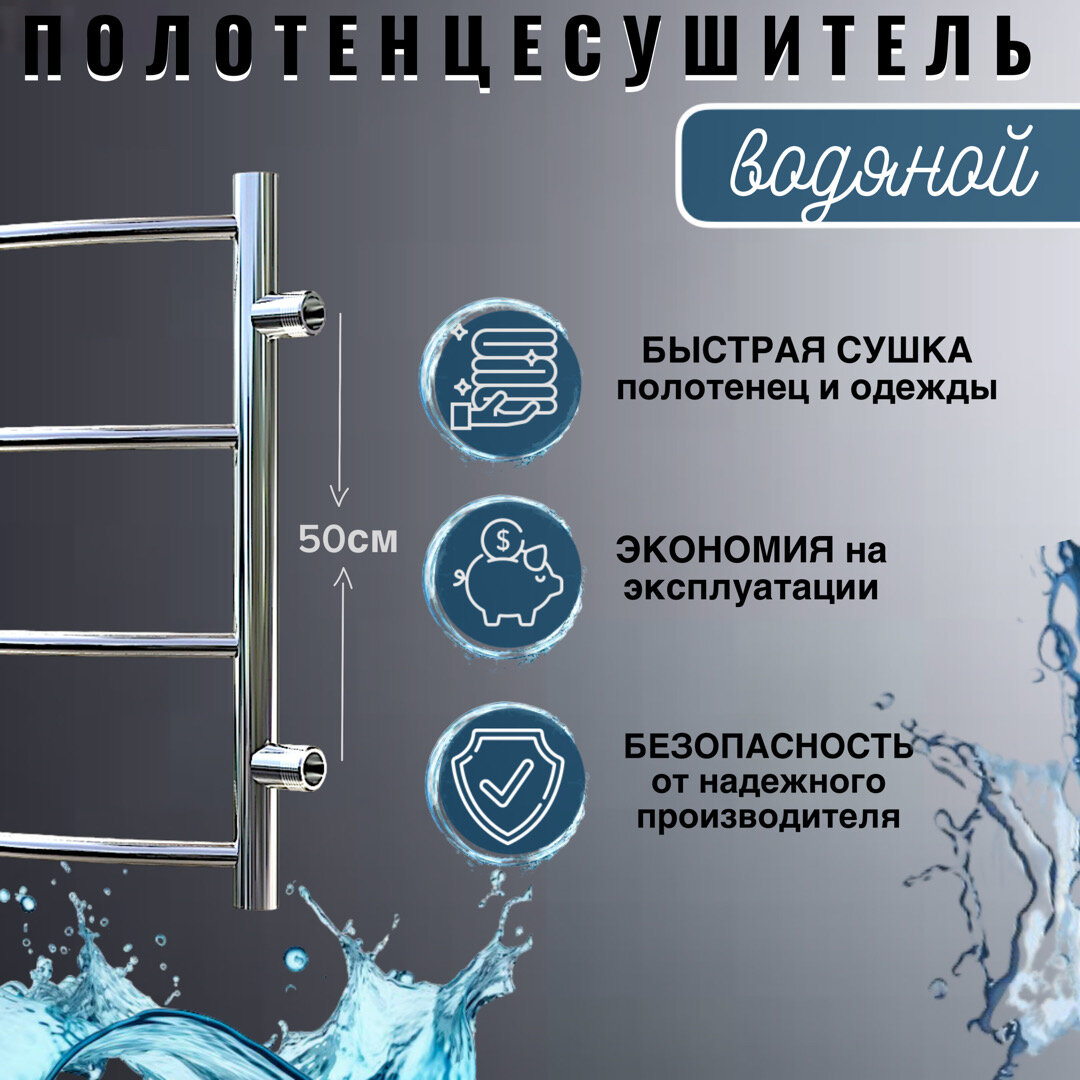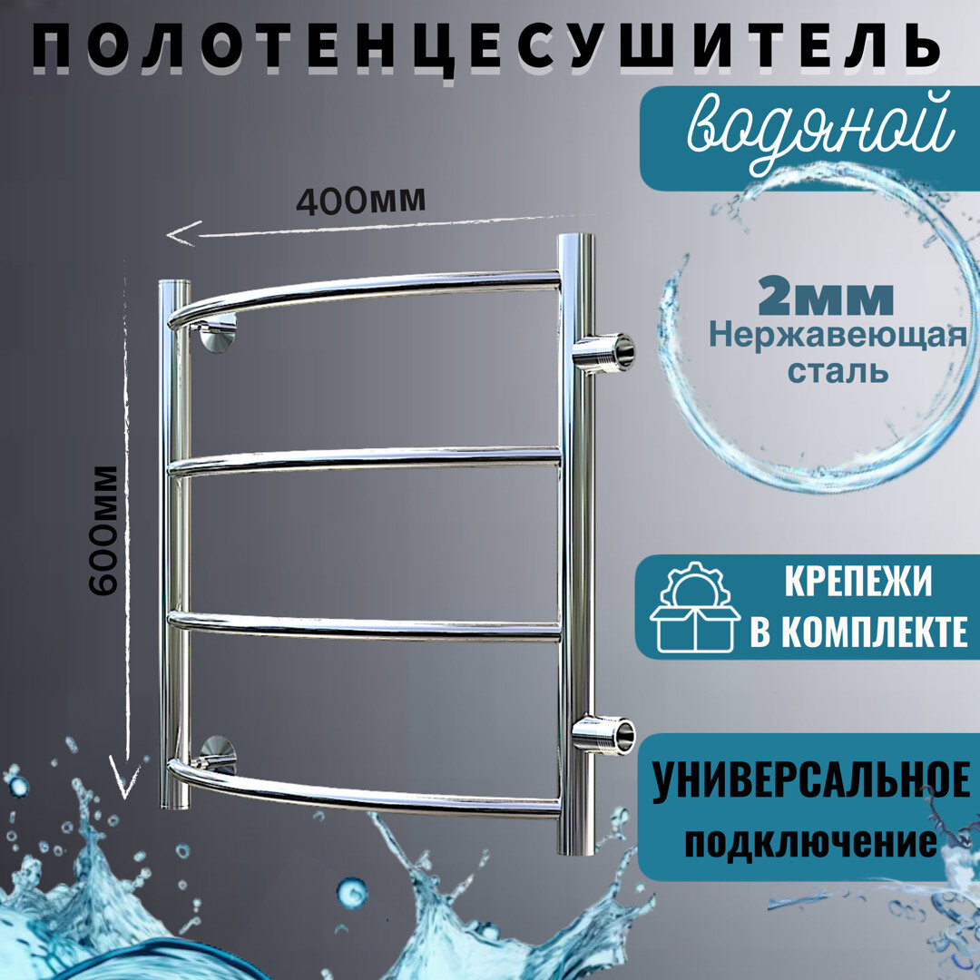 Полотенцесушитель водяной Тругор 476х596мм форма лесенка 4 перекладины универсальное подключение информация: