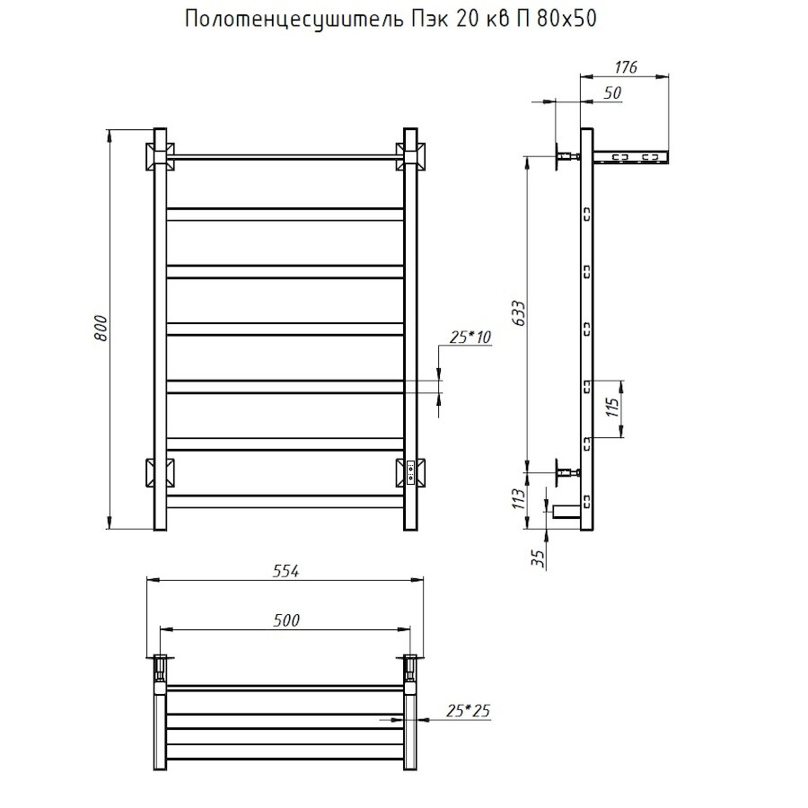 Электрический полотенцесушитель Тругор Пэк 20 КВ П 80х50 информация: