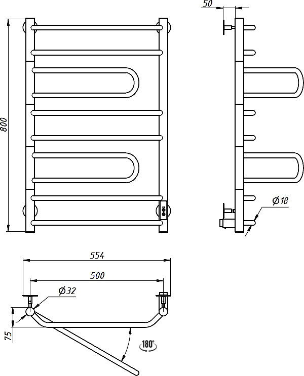 Полотенцесушитель электрический Тругор Пэк 18 80х50, R с выключателем информация: